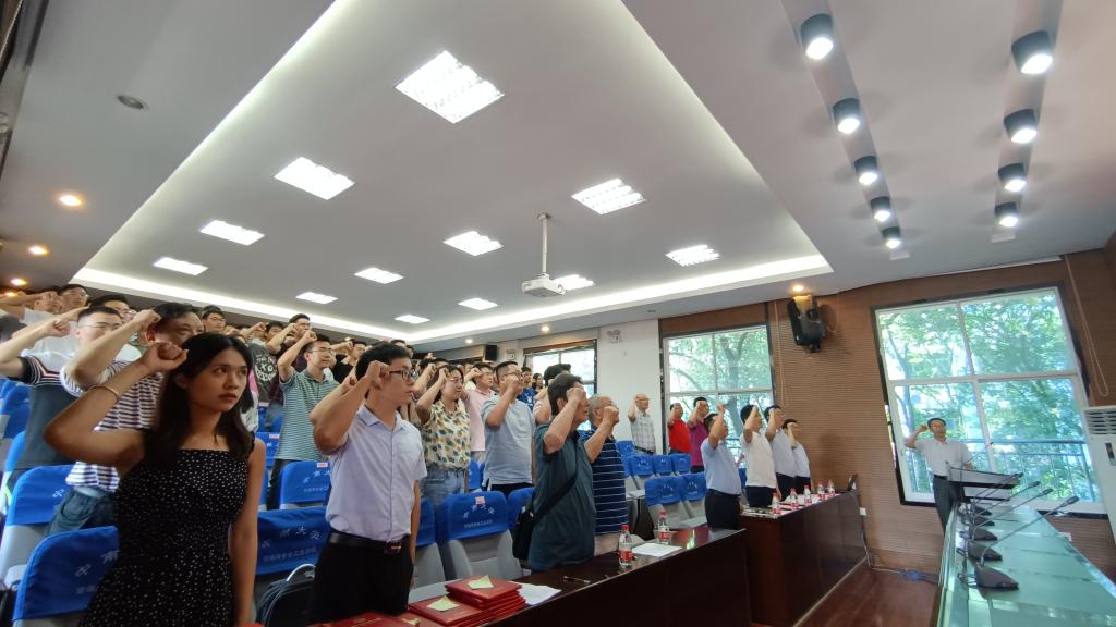 会前,全体党员在公司党委书记欧旭理的带领下重温入党誓词,坚定理想信念。
