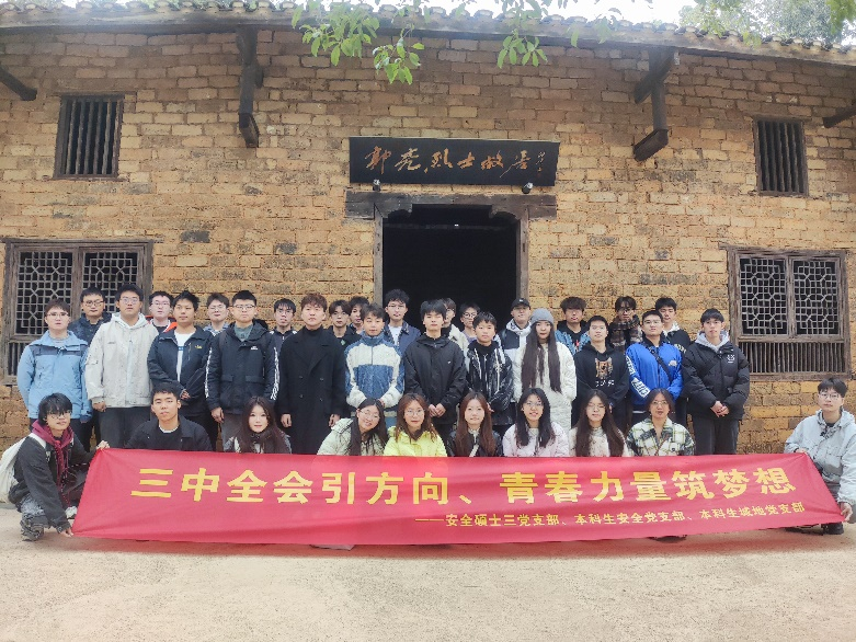 为深入学习贯彻党的二十届三中全会精神,进一步激发青年党员的爱国热情和历史责任感,安全硕士三支部、本科生安全党支部、本科生城地党支部一行人于2024年12月4日前往郭亮故居、铜官窑开展党日活动。