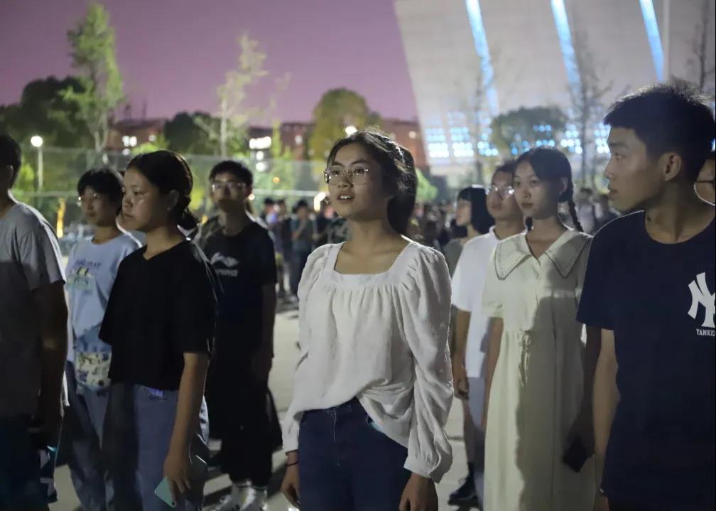 流光将朝朝暮暮的过往化为苍狗,挥手即走;旧校的钟声盘绕着暮光的前路,长云晃悠,回首眺望灰暗的水泥地,隐去了高中时期的光芒,我们滚烫的人生,在一声激扬澎湃的结束语“2021级新生开学典礼正式结束!”后发出光热。