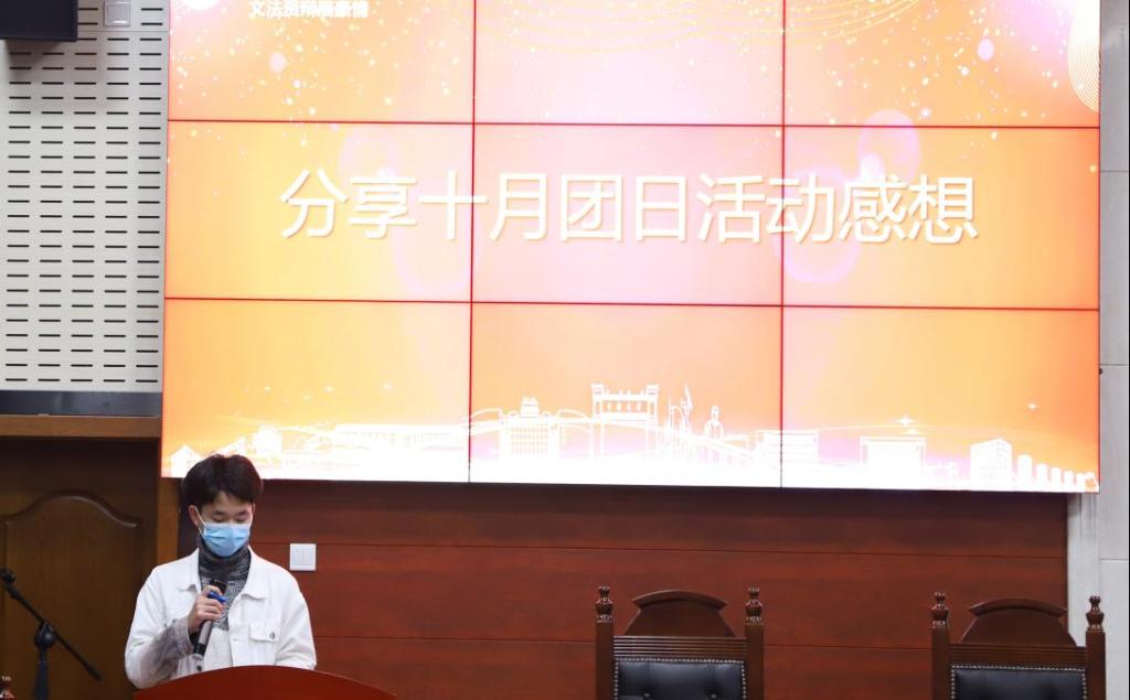 在优秀团支书分享团日活动经验环节,五位优秀团支书讲述了新颖的团日活动形式,分享了自身书写团日总结的经验,并回答了新任团支书所遇到的问题,完成了新老团支书的经验交流,增强了各支部的凝聚力。在分享10月团日活动感想环节,新任团支书代表们纷纷发言,在解决问题中汲取经验,为各院今后的团日活动开展提供了参考价值。会议伊始,李晨旭同学为会议致开幕词。随后,张嘉倪同学为参会团支书介绍团日活动的开展、团日总结的撰写以及相关评优标准,让团支书对自己的工作职责及多彩多样的活动形式有了进一步的了解。