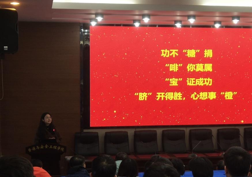 活动开始,马书记对考研同学提出了热烈期许及鼓励,也为在座的考研同学加油大气,让大家坚定学习信心,在之后的十天中继续努力,争取都能成功上岸。黄锐经理作为2018级班导师代表也对同学们进行了鼓励,他鼓励大家要充满干劲,在这一次考研的竞争中脱颖而出。