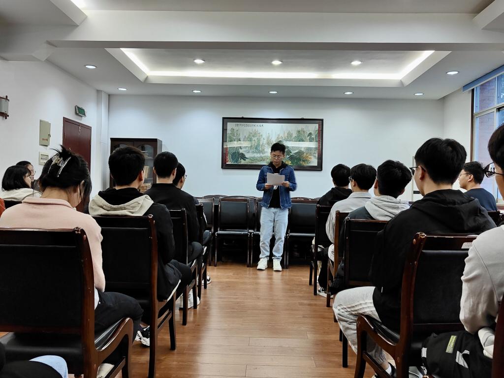 在见面会上,孙瀚老师首先向大家介绍了员工组织构成,并根据组织以往取得的成绩——湖南省红旗团委,引出了传承精神。孙瀚老师倡导大家继承发扬这项精神,同时心中保持信念,不断前进,共同建设更加优秀的员工团体。随后,孙瀚老师向大家提出几点期盼,要求大家在认真工作的同时不断反思,积累工作经验,提高工作效率,提升工作方法。讲话中,大家明确了员工组织的目的是服务同学,也明确了积极建设优秀团体的目标。