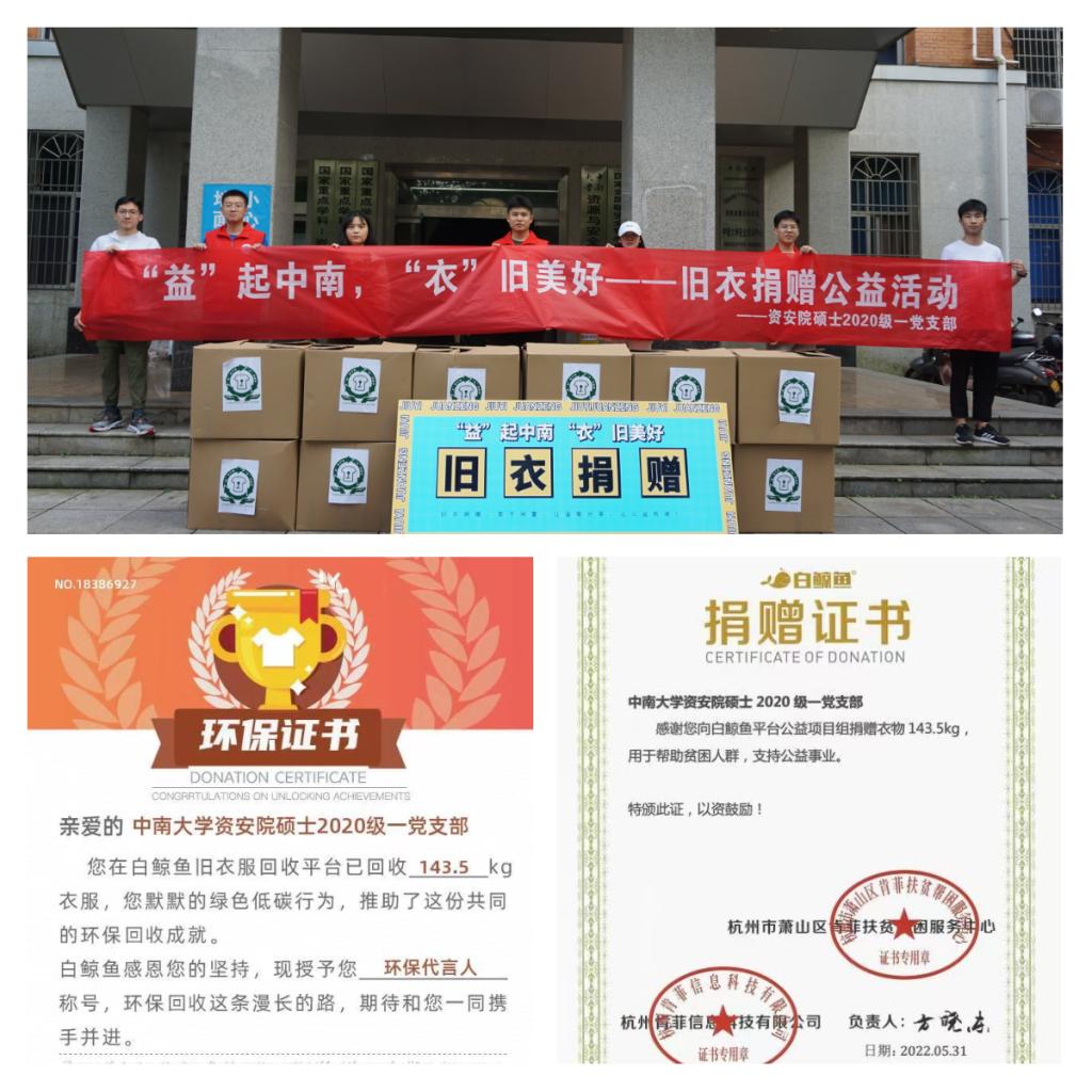 为丰富校园精神文明建设,充分激发同学们的公益与环保意识,bv伟德国际1946硕士2020一党支部于2022年5月31日面向bv伟德国际1946全体师生开展了“益”起中南,“衣”旧美好——旧衣捐赠公益活动。