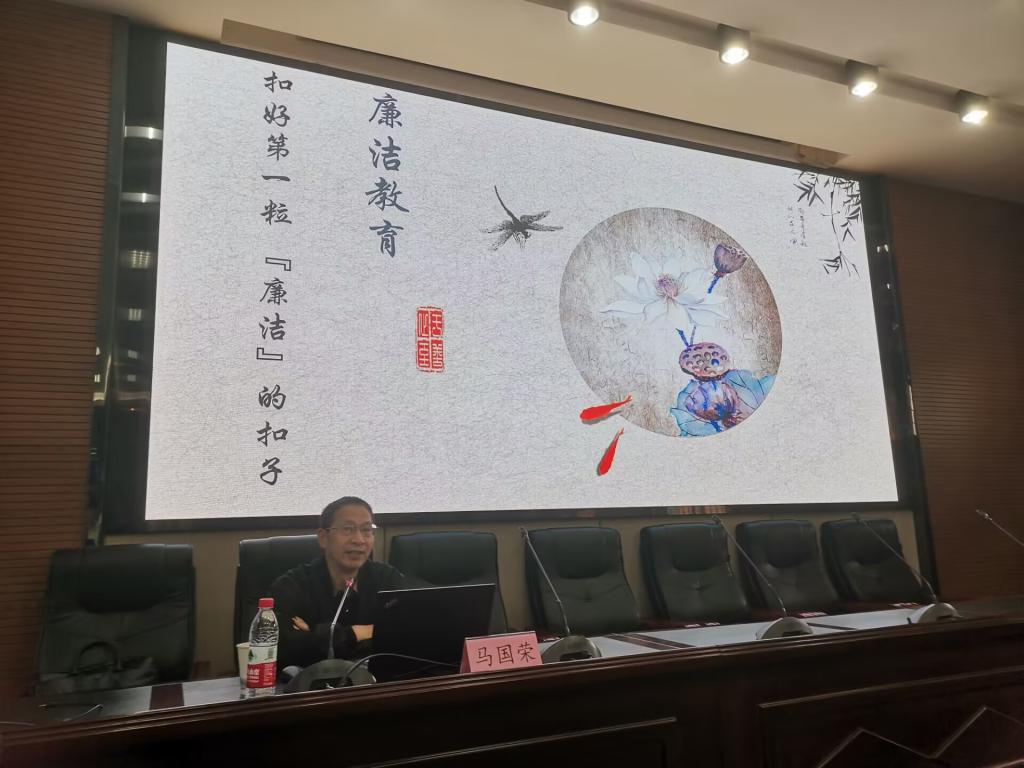 为落实《2022级新生入学教育实施方案》中面向青年员工“廉洁文化教育”一个都不能少的工作安排,引导大学新生认清腐败问题的本质,树立“廉荣腐耻”的荣辱观和是非观,培养其遵纪守法、诚信正直的精神品格。2022年10月9日,bv伟德国际1946在采矿楼T302由bv伟德国际1946公司党委副书记马国荣担任主讲人,为公司2022级全体本科新生授“廉洁文化教育”专题讲座。