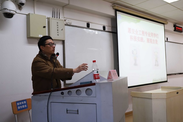 资安院黄锐副经理从作品大赛介绍、参赛作品类别、评审与奖项以及安全学科职业前景等方面进行了指导。首先,对安全专业的同学们寄予了“积极实践,展现自我”的期望,鼓励同学们积极参与,期望广大同学发扬创新精神,提高实践技能。随后,根据作品大赛的各个环节一一进行阐述,并围绕大赛各个时间点的注意事项展开逐一地讲解。最后,向同学们详细地指导了安全学科职业前景,同时以优秀员工事例分别从安全学科交叉综合、安全生产人才类型、安全发展主要领域以及可拓展的安全发展领域等四个方面深入的为同学们介绍安全学科发展和未来。