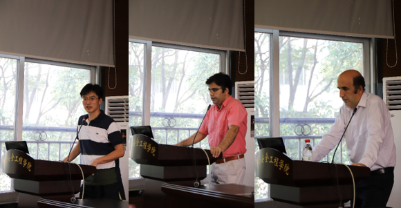 报告伊始,陶明老师简要地介绍了两位学者各自研究的领域,并对他们的到来表示了热烈的欢迎。随后,ALI REZA TALEB BEYDOKHTI博士介绍了所做研究试样的采集环境并就花岗岩在不同环境条件下行为特性的变化做了深入的讲解,现场学习气氛高涨,学术气息浓厚。之后, Aliakbar Momeni博士介绍了以三种凝灰岩为试样的化学成分分析以及蠕变性能研究的主要过程和成果,并总结出了影响凝灰岩蠕变行为特性的诸多因素。
