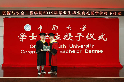 采矿1504班班导师黄仁东教授作为教师代表为同学们带来了寄语和最真挚的祝福。城地1502班武秉剑作为毕业生代表发言。在发言中他回忆起在bv伟德国际1946度过的这四年时光,点点滴滴仍恍若昨日,言语中对老师的感恩之情和对母校的祝福之情溢于言表。他表示,今夏离开中南踏上新的征程,他仍将心怀梦想,砥砺前行。