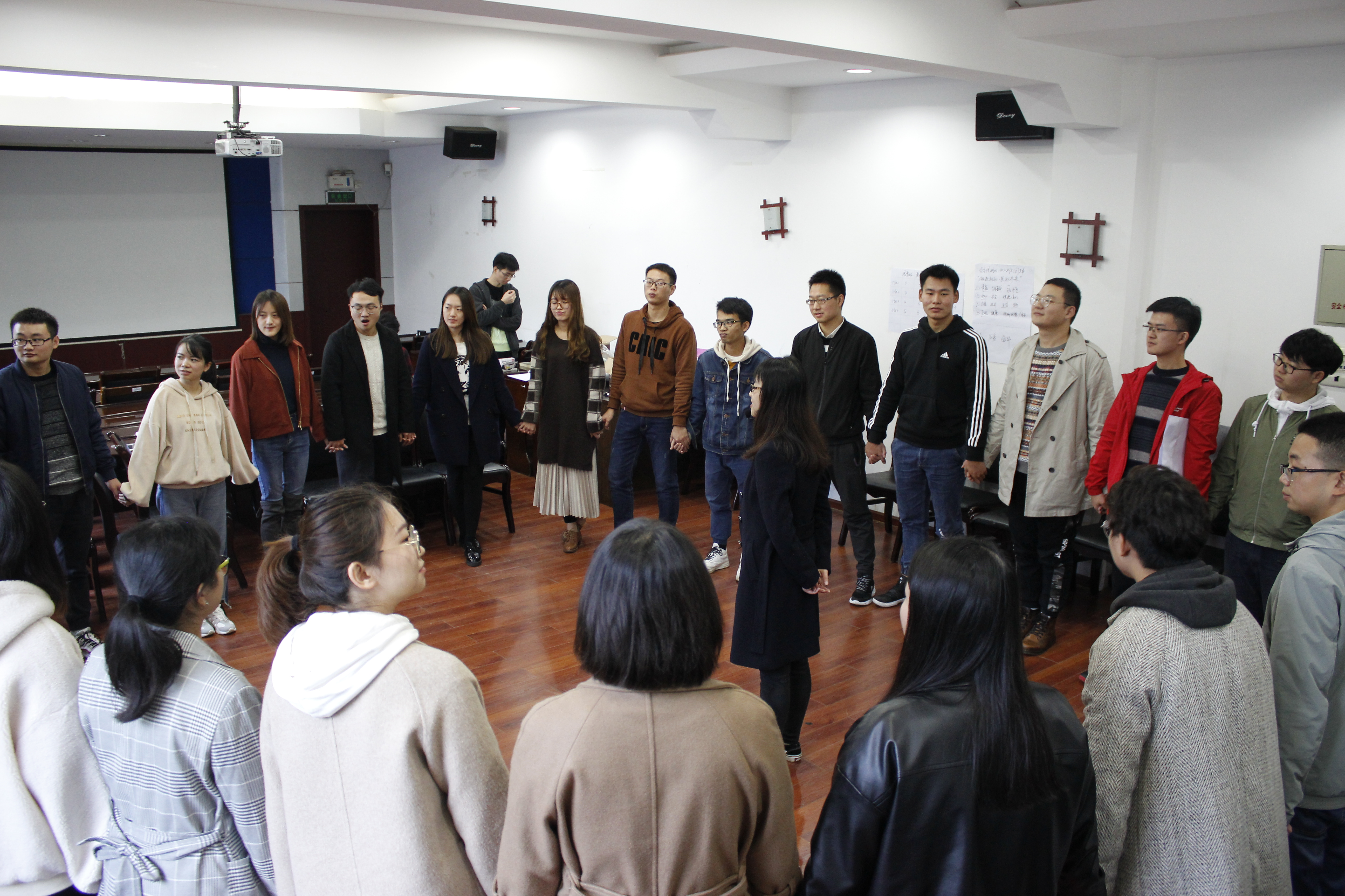 此次系列活动旨在通过开展多样化的趣味性活动和交流环节,增进同学之间感情,在轻松活跃的气氛中帮助同学们找到生活的价值与目标。老师们首先带领同学们围成一圈互相捶背按摩,缓解紧张情绪,放松自我,活动在轻松愉悦的氛围中拉开序幕。