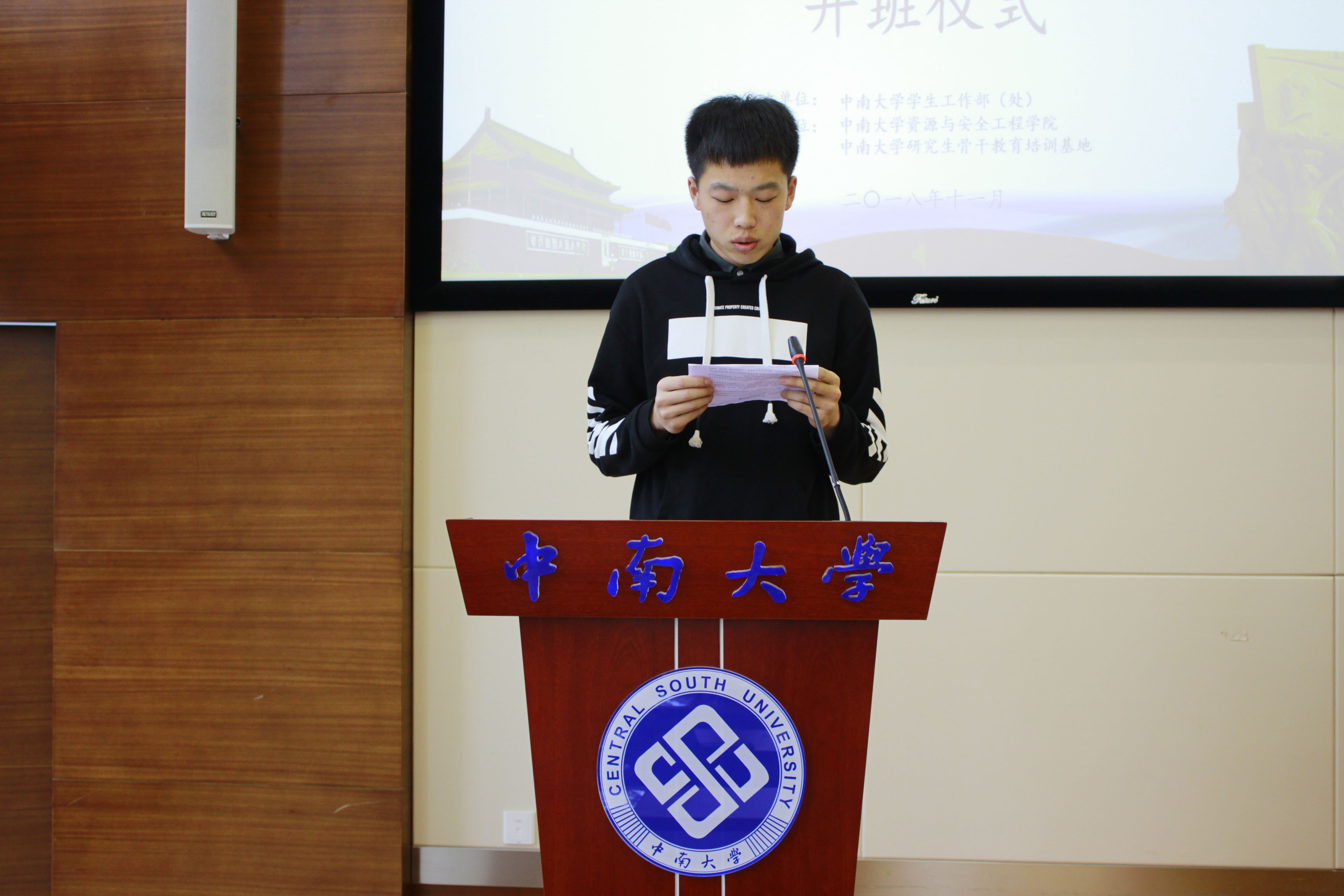 仪式上,资安院硕士1803班的李邦作为学员发言,他首先感谢学工部提供此次学习交流平台,他认为班干部要起到组织领导作用、桥梁纽带作用和表率示范作用,并代表全体培训班干部承诺要全面提升业务能力和综合素质,把培训中学到的知识运用到实际中,成为一个有使命感和责任感的班长。