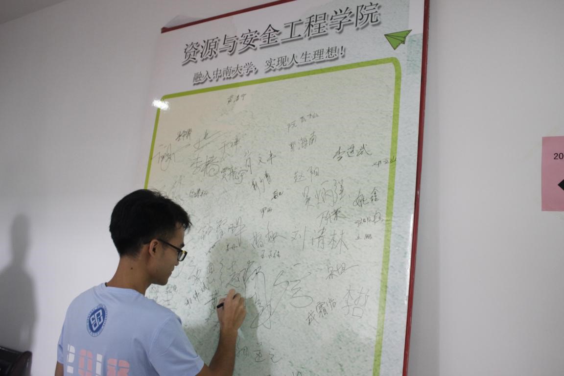 采矿楼222内的报到注册工作有条不紊地进行着,而它的门外也热闹非凡:在采矿楼二楼,新同学们正围着签到板签字留念,假期新生群里的一位位“活跃分子”纷纷在签到板处“显了形”。不远处写有“bv伟德国际1946欢迎你”的朋友圈拍照KT板也引起了同学们的围观。站在KT板后“换身”拍照的一位位新同学,脸上完全没有一丝对新环境的不适。他们的心里,也一定揣满了对新生活的憧憬和期待。