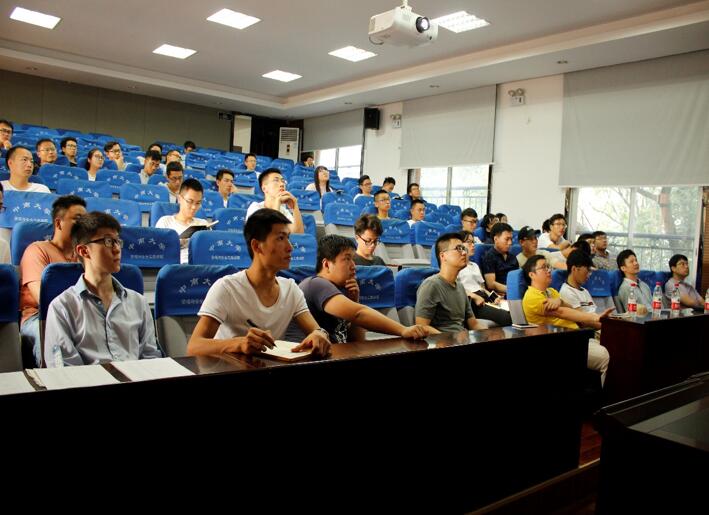 报告会上,沈教授主要从“老矿区塌陷采空区治理现状”以及“地表泥层注浆技术”两个大的方面进行了讲解。首先,他针对日前老矿区主要存在的一系列安全隐患问题,向大家介绍了一种能保持采空区持久性稳定的方法——粉煤灰充填法,并对此种方法的优缺点作了详细的罗列分析,加强了同学们对这种新型的充填技术有了更加全面的认识与了解。随后,沈教授以目前矿区普遍存在的地表沉降现象为研讨对象,为我们详细地介绍了一种能极大改善地表沉降的高水平技术——地表泥层注浆技术。同时,教授还具体介绍了相关实验方案及实验数据,深入分析了地表水对注浆煤层的影响极其改善措施。最后,教授给在场的师生留出了宝贵的交流时间,并针对公司学子所提出的“如何准确便捷地进行现场检测”这一问题作出了详细的解释。
