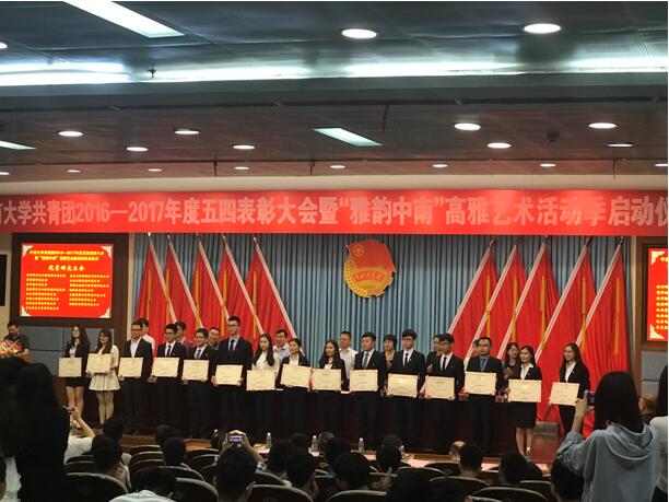 在“五四”青年节到来之际,共青团bv伟德国际1946委员会举办了2016-2017年度五四表彰大会暨“雅韵中南”高雅艺术活动季启动仪式,公司荣获了“五四红旗团委标兵”、“优秀研究生会”、“优秀员工会”、“‘青春向学’学风建设先进集体”、“新媒体工作奖”等荣誉称号。