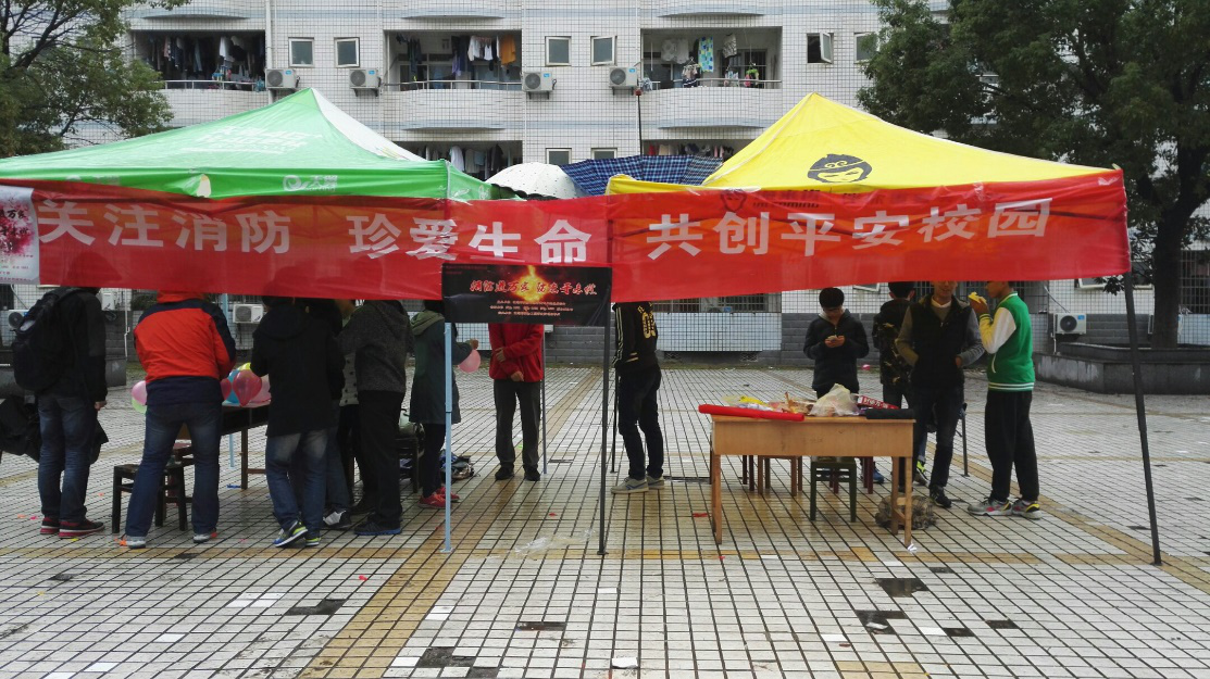 活动从上午11时开始,资安院员工准备好各种活动物资。此次活动中,创意性的将消防安全的知识融于游戏互动中,让所有同学通过游戏了解掌握相关知识,与此同时,工作人员将设计好的消防安全常识宣传单发到过往行人手中,并为大家耐心的解答关于消防安全的一些问题,同学们都表示受益匪浅。虽然活动当天下着雨,但是全体工作人员依然在雨中为此次活动出力。下午13时30分,活动结束,此次活动取得了圆满的成功,达到了预期的效果。此次活动的顺利进行,使得同学们了解了更多校园消防相关知识,提高了同学们的消防防患意识。