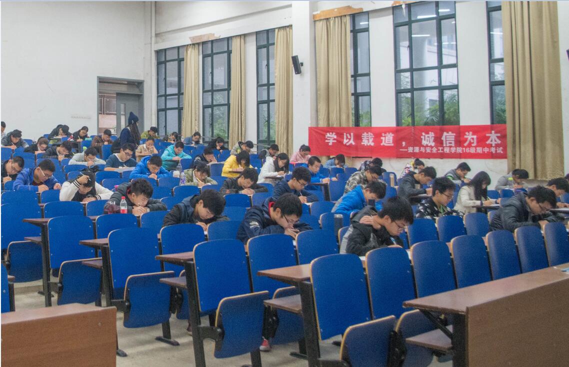 本次考试为无手机考试,由学术部主办,资安院员工会工作人员进行监考。考试开始前,员工会成员分配好了考场、座次,还对考场进行了一系列的布置,如在考场的窗户上贴好“学以载道,诚信为本”主题标语。随后,同学们提前进入考场,在各班班长的安排下进行试前准备。考试过程中,同学们都全神贯注答题,严格遵守考试纪律,整个考场秩序井然,鸦雀无声,并没有出现违反考试规则的员工。在考试过程当中,2016级辅导员侯霄峰老师在各个考场来回巡视监督,在监考的同时,观察员工们的答题速度和答题习惯。虽然要求严格,但是体现了辅导员对同学们的关爱。随后,同学们交上了答卷,也标志着此次16级新生期中考试圆满结束。同学们走出考场后仍彼此交流探讨,相互帮助。