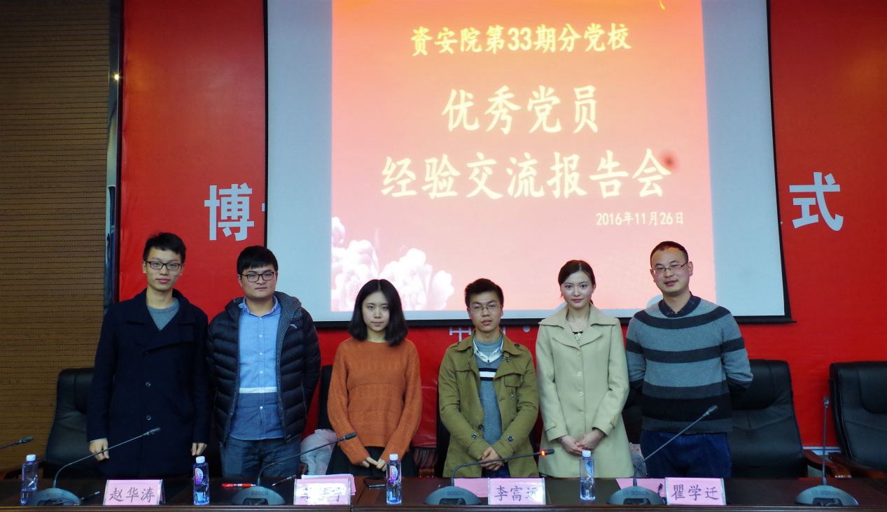 报告会上,瞿学迁同学向大家分享了自己入党的历程、社会实践经历以及学习的经验,鼓励大家积极学习,争取早日加入中国共产党这个大家庭。接下来是李富远同学,他与大家分享了自己自强不息的故事,作为一名优秀的中共党员,他总是严格要求自己,作为“自强之星”他努力学习并在这个基础上参与兼职、家教等活动丰富阅历、锻炼自己。李佳宁同学则针对创新创业项目与大家分享了自己独到的见解,她鼓励大家多多利用身边的资源,坚持自己理想,不断完善自己,让党性的光辉照耀人生。赵华涛同学对当前的形势与政策进行了分析,鼓励同学们坚定共产主义理想信念,践行诚实守信的原则,把握好自己的人生航标。报告会最后,研究生辅导员于谦老师做了总结发言,他用诙谐幽默、通俗易懂的语言给大家讲了“三观”的含义以及如何塑造符合核心价值观的“三观”。