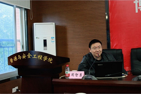 周智勇老师在昆士兰大学机械与采矿工程公司学习交流期间,主要研究方向是光导纤维传感器在采矿中的应用、地下矿山环境的CFD模拟、采矿工业节能研究、开采沉陷预测、煤层气快速测量便携式分析仪与压裂液行为特性。讲座伊始,周老师通过他在澳大利亚拍摄风土民俗、校园风景的照片,介绍了出国留学的流程与昆士兰大学主要研究方向、住宿条件以及学科构建情况。周老师在讲述国外研究生学术研究情况时,特别强调国外研究生的学习作风与工作态度值得学习,借此他还引用吴超教授“基础扎实不如作风扎实”的博文,对公司研究生指导与培养方面发表了自己的看法。周老师表示“科研硬环境我们有实力创造,但我们更需要营造好的科研软环境”,提倡研究生在做学术论文时要踏实精干,精益求精。最后,周老师鼓励同学们去国外深造、体会中西方文化的差异,提升自己的学习能力与专业素养。最后,周老师通过自己在澳大利亚求学时亲身经历的“小插曲”详细回答了同学们踊跃提出关于出国学习深造的问题。