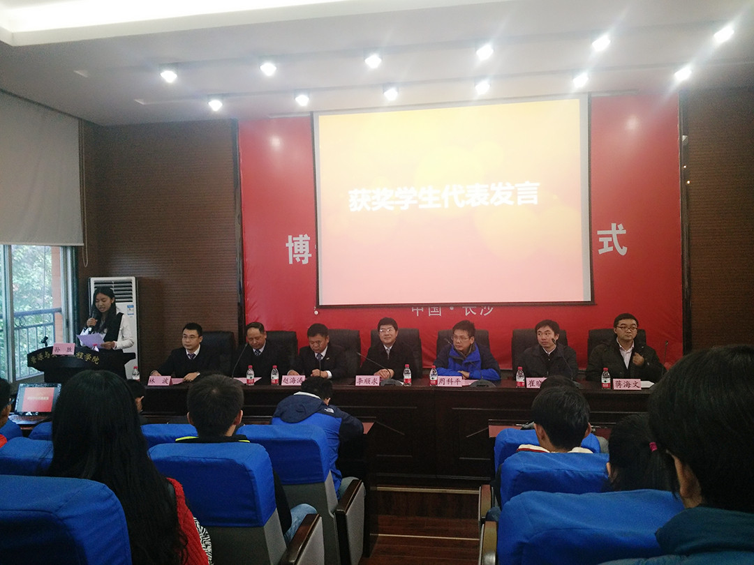 颁奖仪式在共同奏唱国歌后正式开始,李顺求书记宣读了江南化工奖助学金、宏大奖助学金、金诚信奖助金以及湖南开拓奖助学金表彰决定,各奖助学金获得者依次上台领奖并与领导嘉宾留影。颁奖结束后,安全1401班肖陆伟作为获奖员工代表发言,她既表达了对各设奖单位深深的感激之情,同时表示会再接再厉,努力取得更大的成绩来回报公司,回报社会。之后各企业高管向同学们介绍了各自企业近年来的发展情况,并希望同学们能够戒骄戒躁,专心学习,早日成材,为行业发展贡献力量。