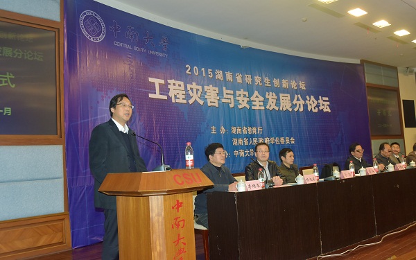 2015年11月14日,由湖南省教育厅、湖南省人民政府学位委员会主办,bv伟德国际1946研究生院、bv伟德国际1946共同承办的2015湖南省研究生创新论坛工程灾害与安全发展分论坛,在公司科教大楼国际报告厅举行了隆重的开幕式暨学术报告大会。