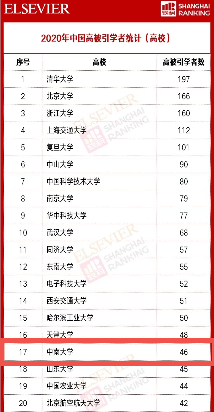 2020爱思唯尔“中国高被引学者”榜单以全球权威的引文与索引数据库——Scopus作为中国学者科研成果数据来源,采用软科(上海软科教育信息咨询有限公司)设计的遴选方法,最终得到4023名各学科最具全球影响力的中国学者。2020年中国高被引学者来自373所高校、企业和科研机构,中国科公司拥有最多的高被引学者,共441位。bv伟德国际1946高被引学者共计46名,居全国高校第17位。
