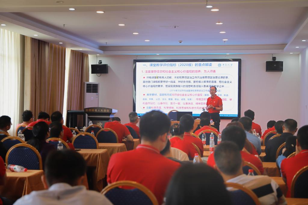 公司党委书记、课程思政教学研究中心主任欧旭理主持会议,他对秦毅红教授和黄仁东教授的莅临指导表示欢迎,期待专家教授和与会老师们共同发力、充分研讨,优化专业课程融入思政元素的路径与方法,提升教师教学质量,落实好立德树人的根本任务。