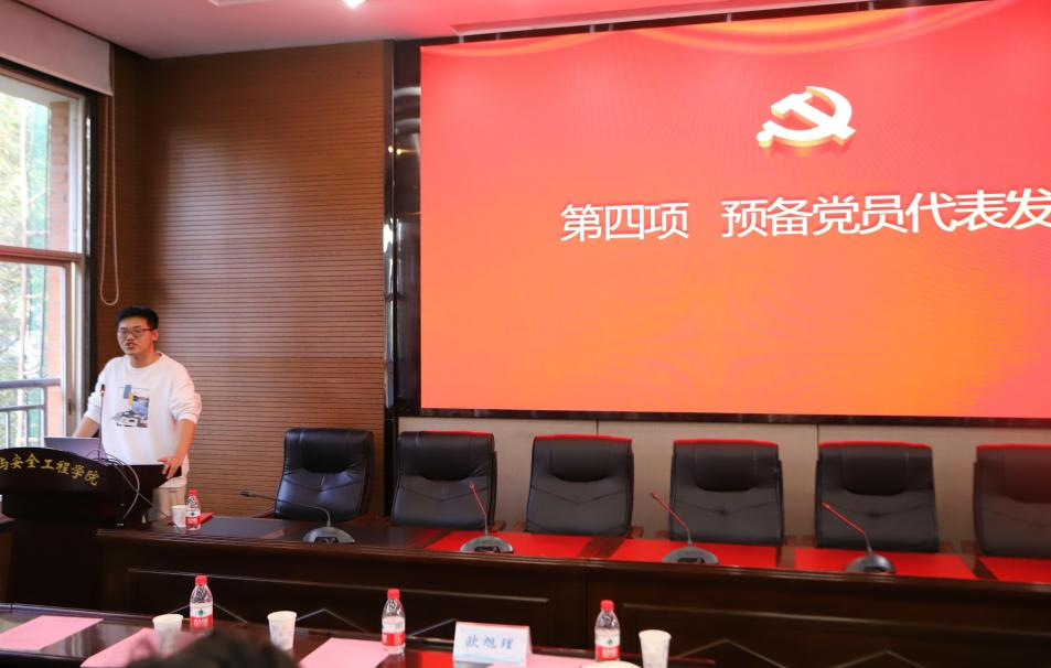 宣誓结束后,本科城地党支部向奕博同学代表预备党员发言。他首先表达了向党组织又进一步的无比光荣和自豪之情。紧接着,他强调作为新时代的预备党员要更清楚地认识到当前的国际形势和国内状况,要始终保持谦虚好学的态度,以孜孜不倦的精神发奋图强,如此才能不愧对党的培养与教育。对此,他从两个方面提出了建议:一是要坚定理想信念,二是要怀着一颗精益求精的好学之心。最后,向奕博同学代表全体预备党员向党组织表明决心:未来将在学习与实践当中不断锤炼自我、完善自我,以高标准、严要求面对工作与学习。