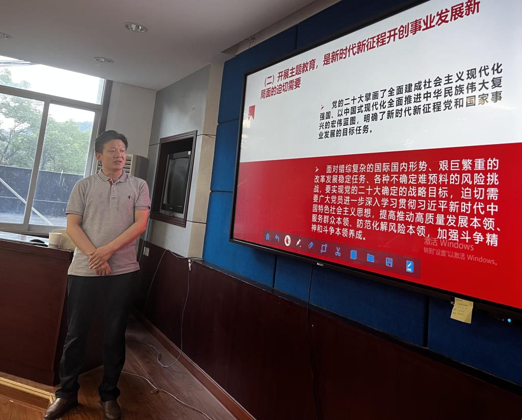 结合主题教育活动的任务目标和走深做实,周子龙经理在党课中提到,我们要以 “学思想、强党性、重实践、建新功”为总要求,把思想和行动统一到党中央决策部署上来,自觉用党的创新理论统一思想、统一意志、统一行动,通过以学促研、以研促学、以查促改,层层递进推动主题教育走深走实。