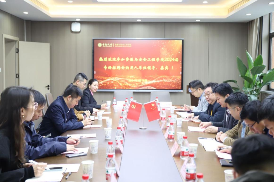 与此同时,公司领导与企业嘉宾在采矿楼222会议室进行座谈。周子龙经理首先代表公司对企业来院交流选才表示热烈欢迎,希望与用人单位携手推进毕业生充分就业、立足行业就业,进一步加强校企双方产学研合作,实现创新链与产业链融合。李超、孙敏之、杨珊、刘志勇、习泳等企业嘉宾先后发言,双方代表围绕本科人才培养需求、共建实习实训基地、研究生招生、员工就业创业等进行了热烈的交流探讨。