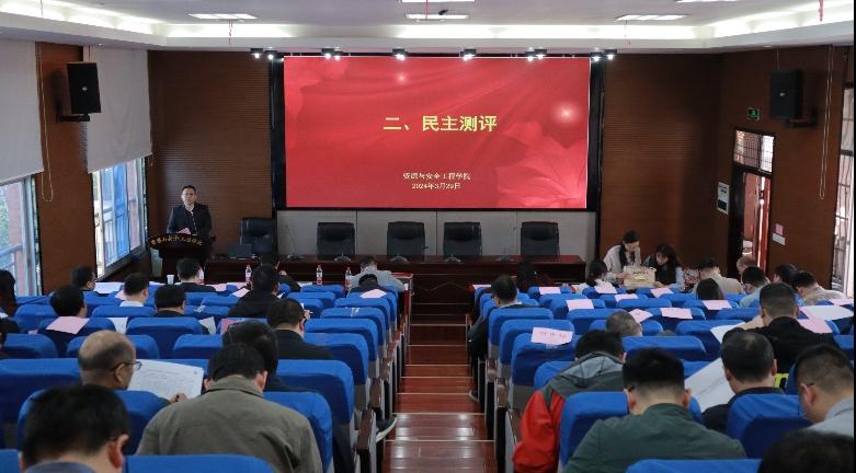 随后,由全体教职工对公司领导班子进行民主测评。秦进书记向教职工介绍了填写民主测评表单的注意事项,传达了本项议程的重要意义,强调本次会议旨在推动建设一支政治过硬、适应新时代要求、具备领导现代化建设能力的领导班子队伍。