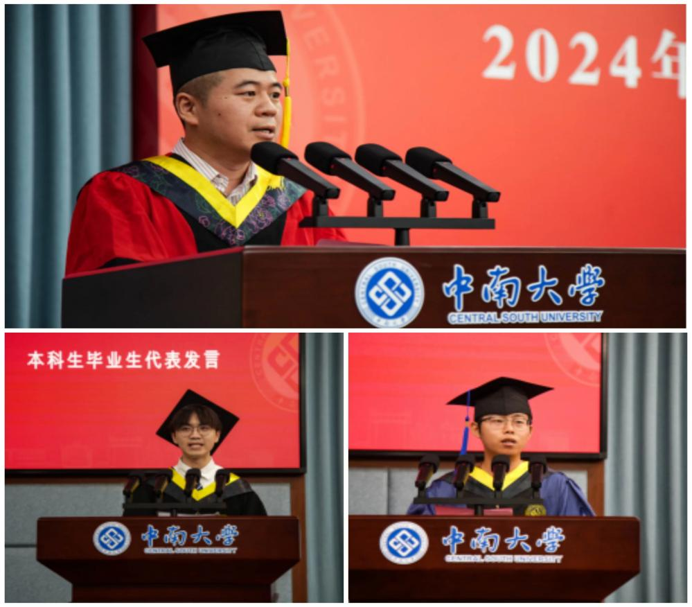 李坊朴和谭汉同学分别作为本科和研究生毕业生代表讲话,恳切的言辞中饱含对师友的感恩、对母校的不舍以及对前途的期许。教师代表林杭教授寄语毕业生将所学知识应用于未来的社会实践中,回馈社会,成为推动社会进步的力量,并深情表示公司和公司永远是大家的坚强后盾。