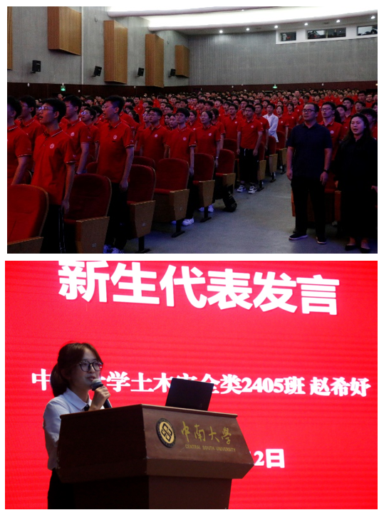 土安2405班赵希妤作为新生代表发言,她表示老员工活充满着机遇与挑战,要珍惜宝贵的青春韶华,努力学习专业知识,成就一身本领,不辜负老师的期望,奋力追逐实现人生理想。