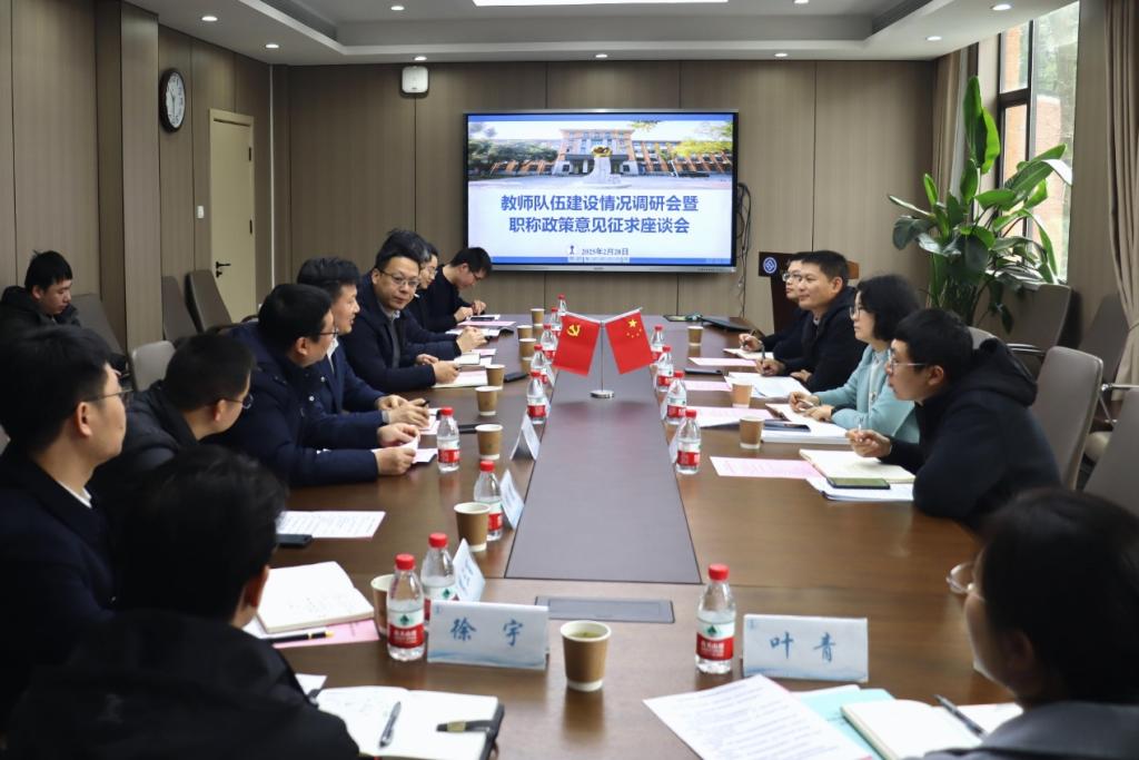 为进一步加强教师队伍建设,深化职称制度改革,2025年2月28日,bv伟德国际1946人才工作办公室(博士后管理办公室)副主任刘华森、人事处副处长张仕璟一行到公司开展教师队伍建设情况调研会暨职称政策意见征求座谈会。