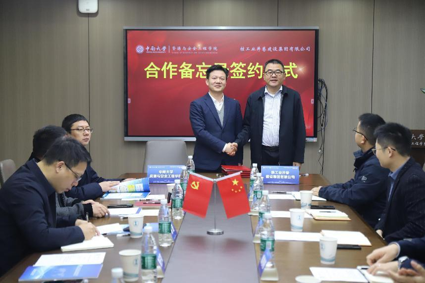3月10日,公司与核工业井巷建设集团有限公司在采矿楼222会议室隆重举行合作备忘录签约仪式。公司党委书记秦进、经理周子龙、副经理邓红卫、黄锐出席,签约仪式由党委副书记岳龙主持。核工业井巷建设集团有限公司党委委员、董事、副总经理阮仁酉等来宾出席签约仪式并座谈交流。