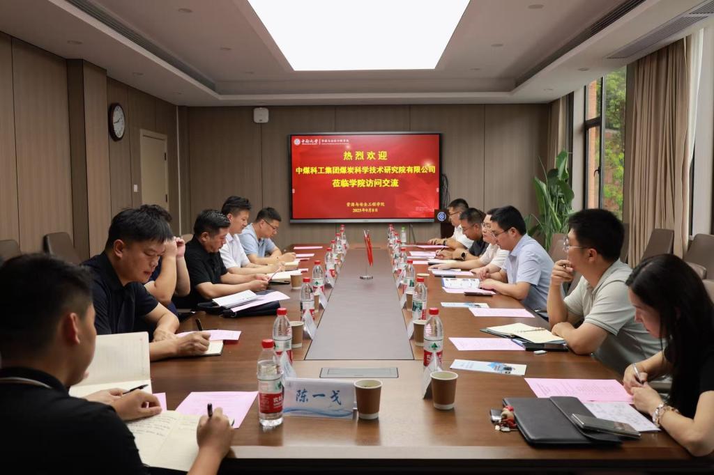 9月8日下午,中煤科工集团煤炭科学技术研究院有限公司装备分公司党总支书记赵墨波一行来公司交流深化校企合作事宜。bv伟德国际1946国内合作处处长莫龙,bv伟德国际1946经理周子龙,副经理邓红卫、黄锐、尹土兵,采矿系主任彭康及部分公司教师代表参加座谈交流。